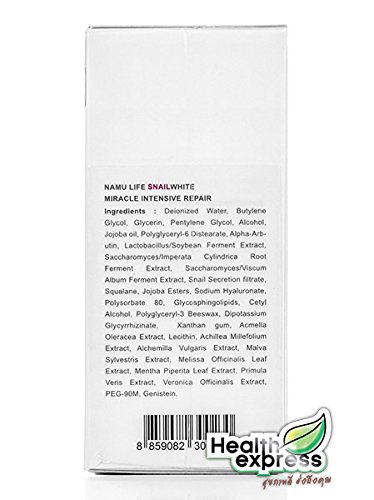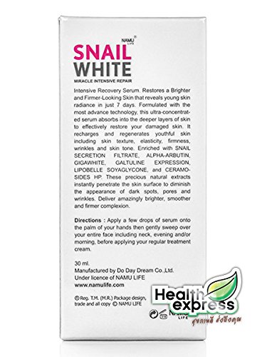 -. Feature : ✔ Express Shipping Sevice [ 3 - 5 days ] . / Snail White Miracle Serum helps restore skin aging intensively, / add powerful rejuvenation to the skin while you sleep, / it's deeply restore and recondition skin. / Rich in natural extracts, formula of NAMU LIFE SNAILWHITE.
