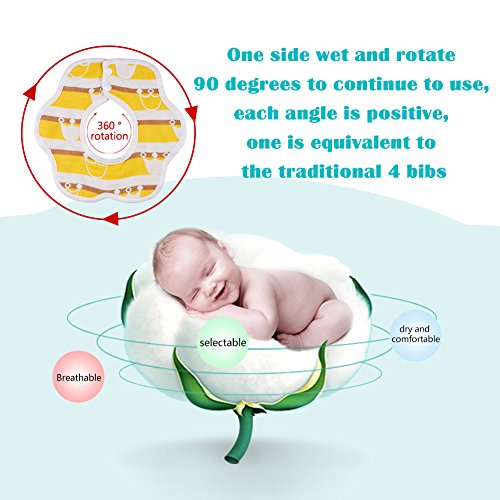 -. Title : Astarye Flower Shape Drool Bib, 100% Cotton 6 Layer, for meals, 360 Degree Rotation, Double-Sided Use, Contains 6, Gift Certificate for Infant Baby