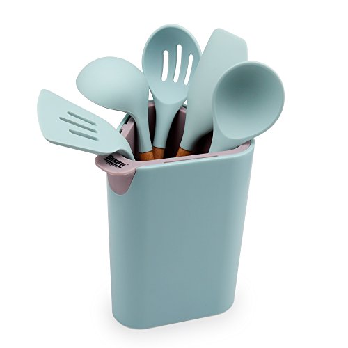 -. Feature : Comes in a total of 5 kitchen tools: Soup Ladle, Solid Spoon, Skimmer, Slotted Turner and Slotted Spoon. / Also includes a smart and chic designed tools holder that involves 2 separable compartments, which when combined together, gives you 5 knife slots all around, fitting different knifes ranging from cook knife to filet knife to bread knife, even down to small fruit peeler knife. / Tools set are made of high quality wood handle plus a silicone head with nylon insert. Definitely feels luxurious and expensive, durable at the same time. / FDA approved Silicone. / A strikingly eye-catching color combination of Mint, Grey and Mauve, adds a hint of subtle beauty in your kitchen. Perfect for your beloved ones, friends and families, colleagues and acquaintance; for special events such as house warming, Thanksgiving, Christmas and even Weddings!