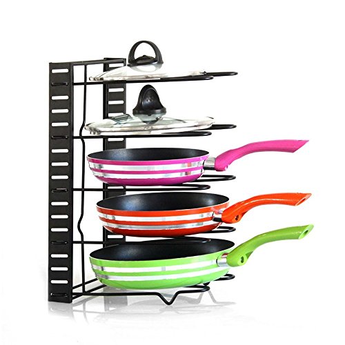 This pan organizer is designed for pan, lids, pots, griddles, splatter screens, and cooking utensils, Saving cabinet/countertop space and managing pans well.