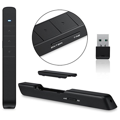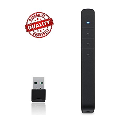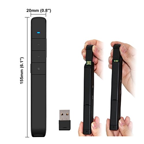 ✔PLUG AND PLAY – The laser pointer built-in docking bay in wireless transmitter tail to store USB receiver for easy pack up and portability, USB stays secured into place with a magnet system, there's no software to install. 2.4G universal channel.