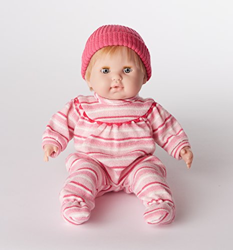 - This darling 15" baby doll has a sweet expression, huggable cloth body and soft vinyl head and limbs. Baby has sparkling blue eyes that open and close with eyelashes to match her blonde hair