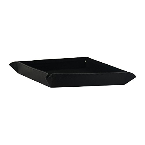 Genuine Leather Folding Jewelry Organizer / Bedside Accessory Tray Box, Black