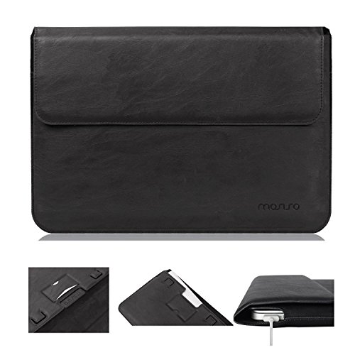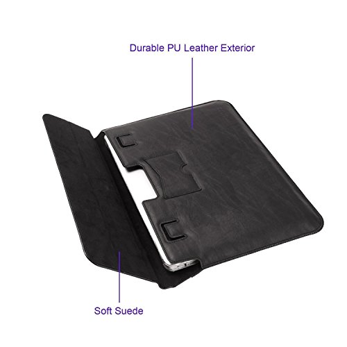 Envelop sleeve design with premium PU leather exterior and soft nubuck fiber interior to protect tablet from scrapes and scratches. Larger pocket on the back can store documents, smartphones and other small items. Design of this case allows you to charge MacBook inside.