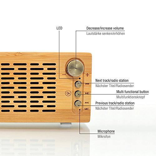 KLEIN, ABER KLANGGEWALTIG - Trotz der kompakten Grosse, uberzeugt der Speaker mit knackigem Sound und guten Bassen. Sie haben vielfaltige Moglichkeiten der Musikwiedergabe - Zur Auswahl stehen Bluetooth, ein integrierter TF-Kartenleser (Einfach SD-Karte mit Lieblings-MP3s einstecken.) oder die FM-Radiofunktion in Verbindung mit dem Micro-USB-Kabel als Antenne.