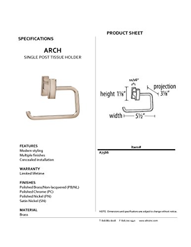 Alno A7566-SN Arch Modern Tissue Holder, 5-1/2", Satin Nickel