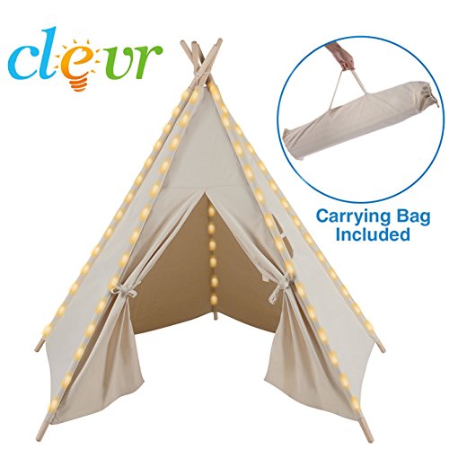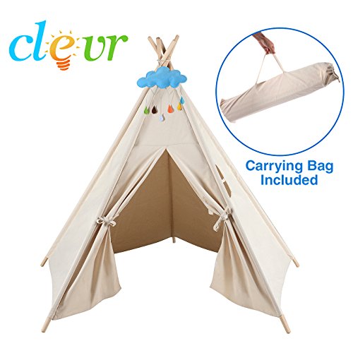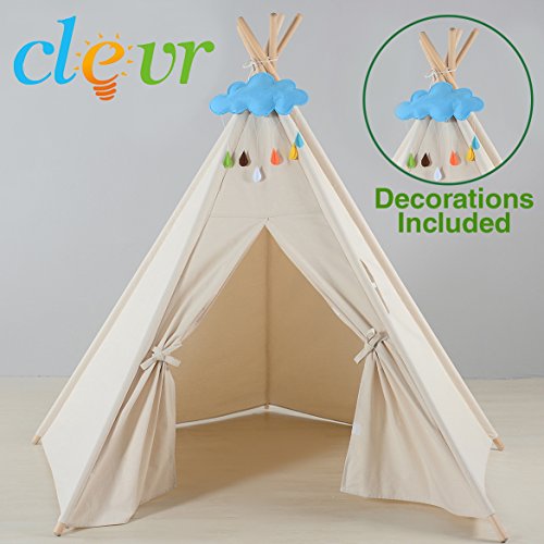 Our unique poly-cotton blend canvas provides superior strength and durability, while allowing it to be easily painted. The Clevr teepees sets up in minutes, easy to decorate, quickly dismantles and comes with a convenient carry bag. Complies to US Toy Safety Standards.