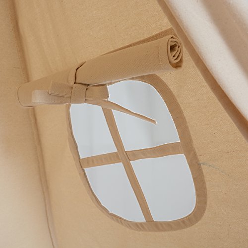 Our traditional style teepee has a superior 5 wooden pole construction, while others only use 4, making the structure less stable. It features a convenient flap door with Velcro closure, easy roll-up window for extra ventilation and visibility, and comes with a quality canvas carrying bag.