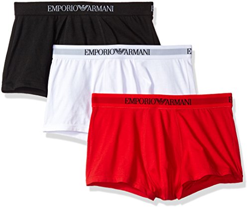 Emporio Armani Men's Cotton Trunks, 3-Pack, Black/White/Red, Large