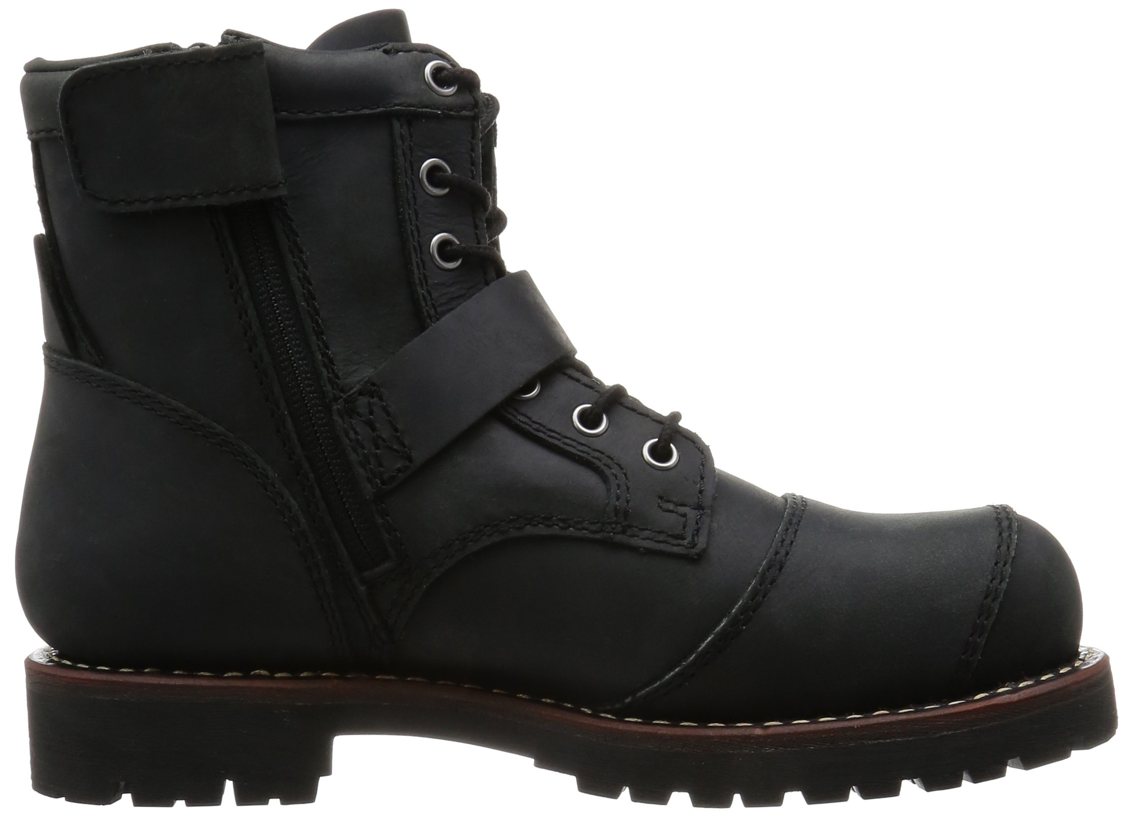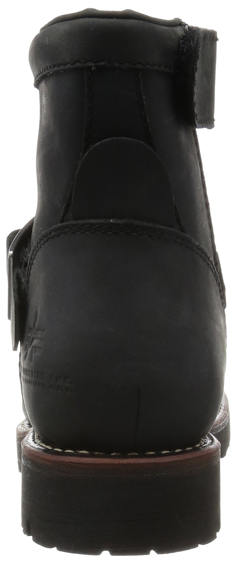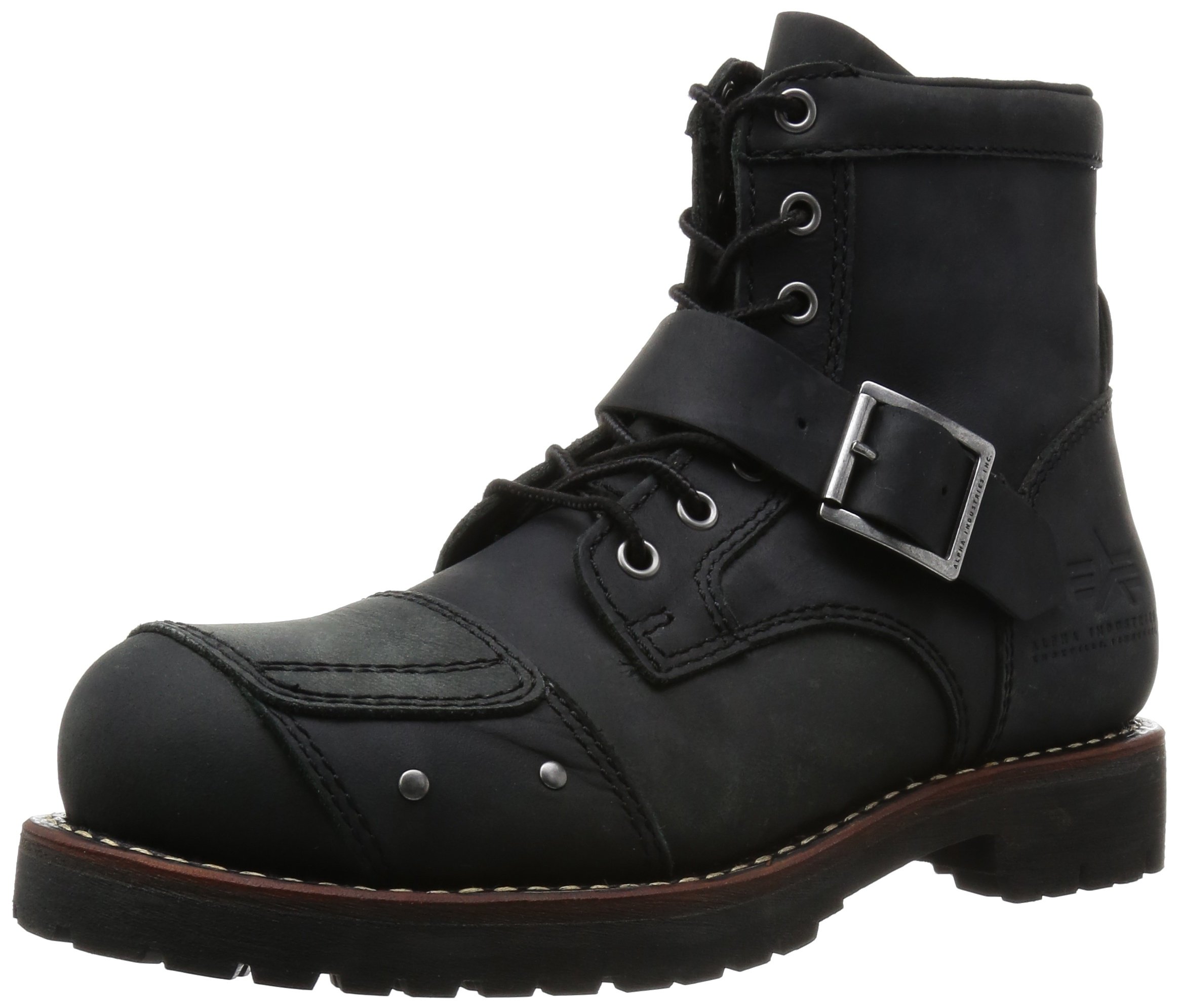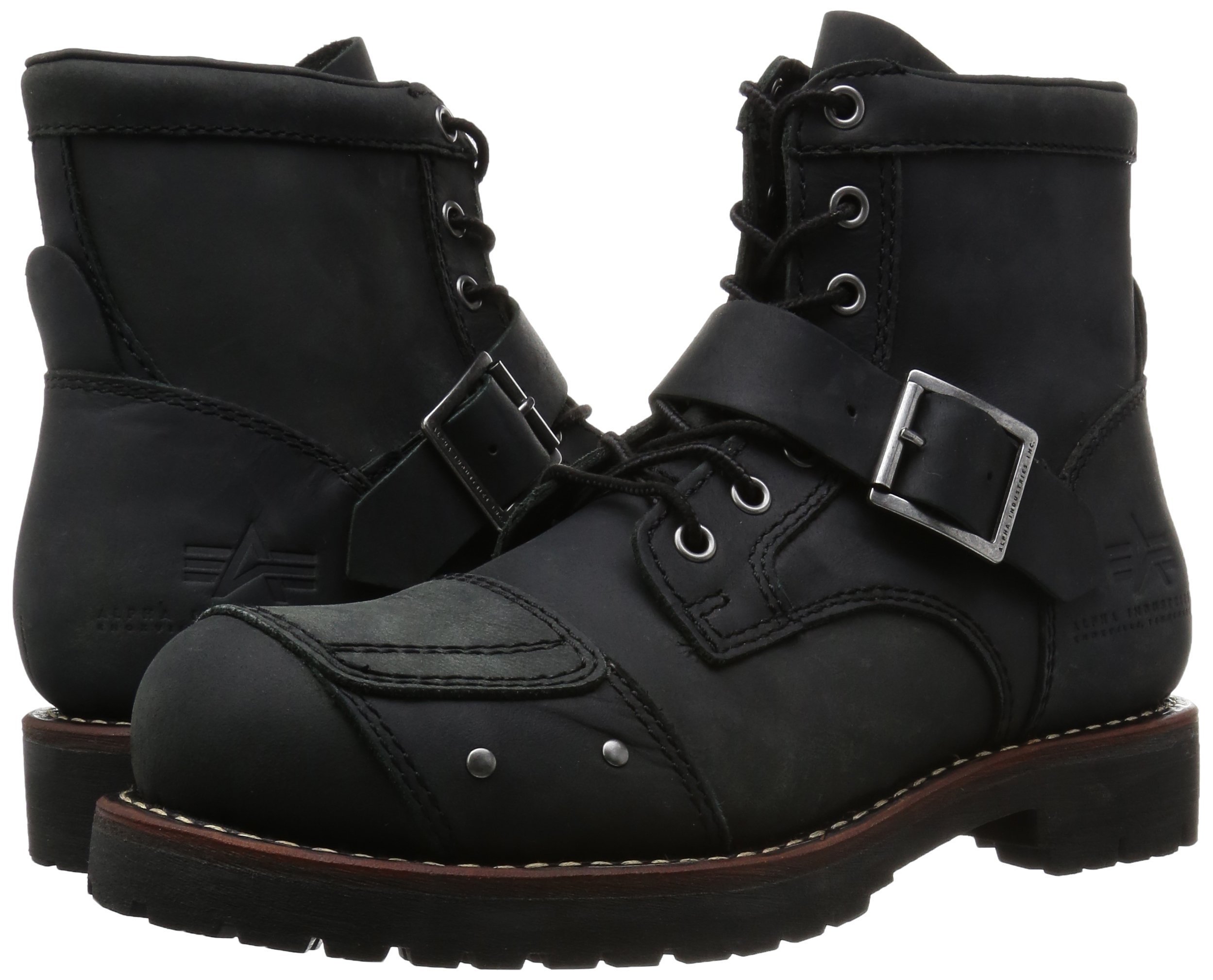 ALPHA INDUSTRIES 7 HOLE BOOTS which is a design point with a single belt using a shift guard with a stud on the top and ALPHA original buckle.