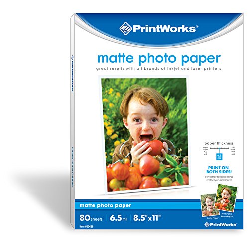 Printworks Matte Photo Paper for Inkjet Printers, Printable on Both Sides, 6.5 mil, 8.5 x 11 inches, 80 Sheets (00426-6)