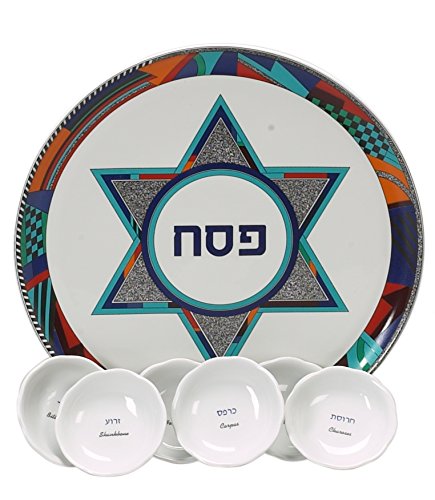 Colorful Star of David Porcelain Passover Plate with Matching Plates