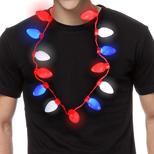[Product Information]- Excellent high quality flashing red, white and blue necklace. Plastic break-resistant bulbs to wear or decorate: Necklace is attachable to create custom lengths and wall decor. Hours of fun for adults and children alike