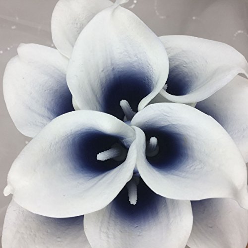 Lily Garden Mini 15" Artificial Calla Lily 10 Stem Flower Bouquets (Navy Blue Center)