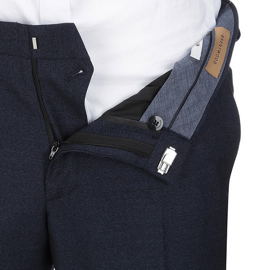 - 톤온톤 잔조직 디자인을 적용한 남성 수트 팬츠.