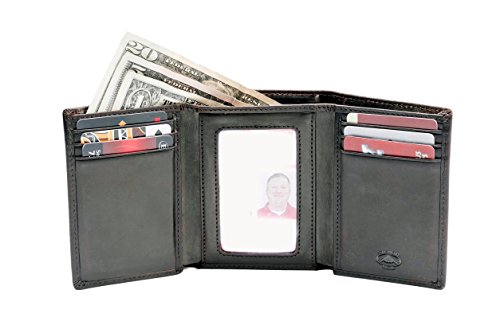 -. Binding : Apparel -. Brand : Stealth Mode -. Department : mens -. Feature : Enjoy style and safety together with Stealth Mode's men's leather trifold wallet. / This men's leather trifold wallet features quality napa leather, 9 card slots and an ID window, divided billfold, and our secure RFID blocking lining to keep your personal and financial info safe. / Measuring 3.25" x 4.25" when closed and 9.25" x 4.25" when open this large men's wallet has 9 card slots that can comfortably fit 12+ cards. It also includes a divided billfold to keep your money and receipts organized. / The RFID blocking lining helps keep your personal and financial info safe by blocking malicious attempts to steal your identity from your chip enable cards. Our lining blocks high frequency (13.56 MHz) RFID signals. / Packaged in a handsome box, this stealth wallet makes a great gift for men. -. ProductGroup : Apparel -. ProductTypeName : ACCESSORY -. Size : One Size -. Title : Stealth Mode Trifold RFID Blocking Leather Wallet for Men