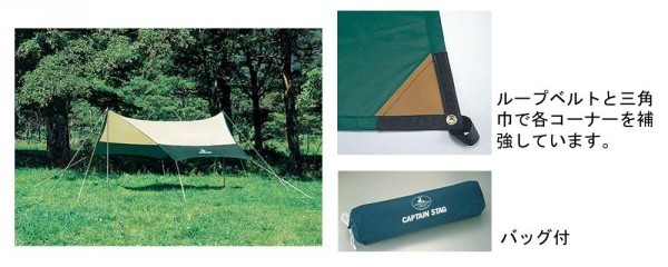 | 素材・材質 | タープ:ナイロン190T(PU加工・防水) ポール:スチールφ22×220 |