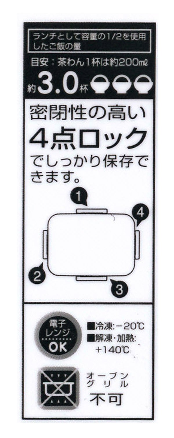 ● Lunch box that can be stored securely with 4-point lock with high sealability