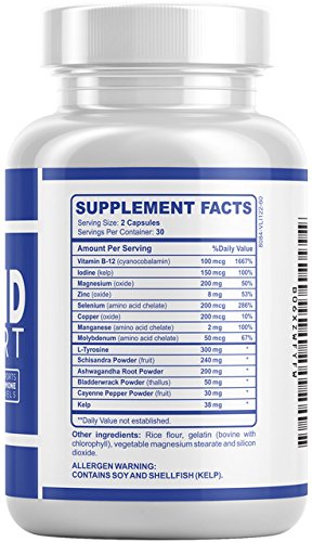 -. Feature : IMPROVE THYROID FUNCTION & BALANCE HORMONES- Carefully formulated to include the ideal blend of herbal ingredients, Thyroid Support works to regulate your thyroid back to its optimal functionality. With your hormones balanced you will feel a new sense of energy and improved overall mood. / AID WEIGHT LOSS AND IMPROVE METABOLISM- Pump up your metabolic levels with our all natural remedy! When used with a healthy diet, Thyroid Support can help increase weight loss and energy levels in addition to regulating your endocrine and immune system. / QUALITY YOU CAN TRUST! Our Thyroid support is NON-GMO, all-natural, and MADE IN THE USA in a GMP (good manufacturing practice), FDA APPROVED FACILITY. / 100% MONEY BACK GUARAUNTEE - You have nothing to lose!