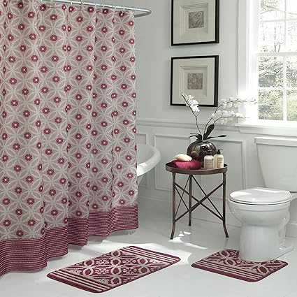 - Complete 15-piece set includes shower curtain, hooks, bath rug and contour rug