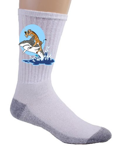 (BA)/Men/Socks/DIRECT FROM USA/Pirate Giraffe on Shark Jumping Out of Water Logo - Crew Socks