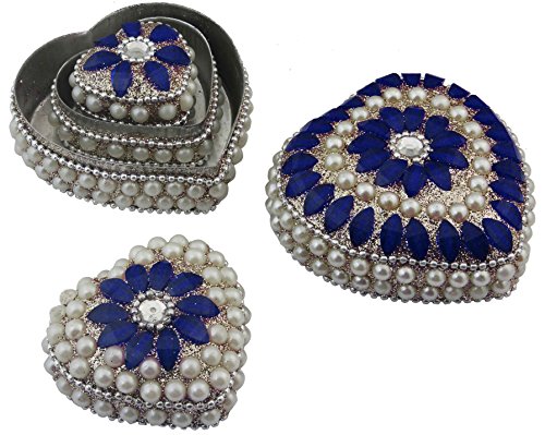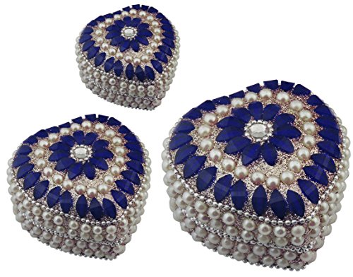 Christmas Gift Set of 3 Jewelry Box Blue Decorative Storage Box for Jewelry, Precious Items Heart Shape -3"x3"x1.8"