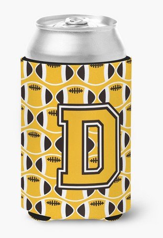 Caroline's Treasures CJ1080-DCC Letter D Football Black, Old Gold and White Can or Bottle Hugger, Multicolor