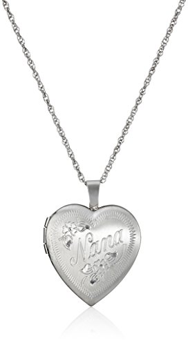 Sterling Silver heart shaped locket with "Nana" engraving and spring-ring clasp