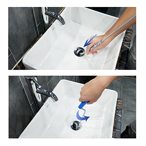 - Durable Material: Stainless steel spring and polyethylene handle, easy to grip and is even more durable. Flexible drain cleaner can grab obstructions at P- trap where most clogs occur.