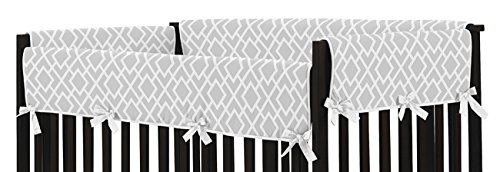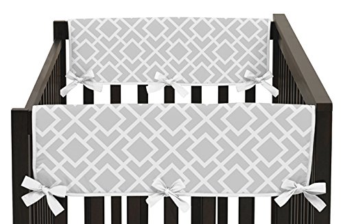-. Title : Gray and White Diamond Teething Protector Cover Wrap Baby Unisex Boy or Girl Crib Side Rail Guards - Set of 2