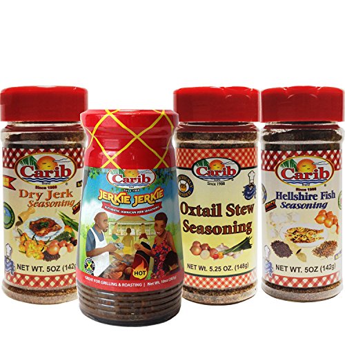 -. Feature : Jamaican Seasonings Variety 4-Pack for MEAT, FISH & POULTRY / 1 x Carib Spicy Jamaican Dry Jerk Seasoning 5oz / 1 x Carib Jerkie Jerkie authentic Jamaican Jerk Seasoning 10oz / 1 x Carib Oxtail Stew Seasoning 5.25oz / 1 x Carib Spicy Hellshire Fish Seasoning 5oz