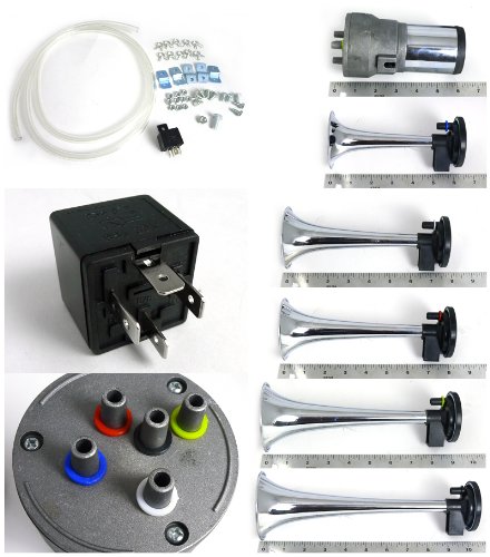 ReleaseDate : 2016-04-30 Studio : Spec-D Tuning Publisher : Spec-D Tuning Binding : Automotive Product Description Brand new in original packaging. Exactly the same as shown in the picture! Made of high quality ABS plastic with chrome finish. Comes with 5 plastic trumpet 12V air horn and compressor. Trumpet length: 6.2.inch, 7.95inch, 8.34inch, 10.15inch and 11.10inch. Work air pressure: 0.08~0.12MPA Sound pressure level: 125¡O5db The horn is like the one in "La Cucaracha". Easy to install, direct bolt on. Fitment : Fits for most cars and vehicles. 0