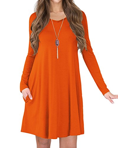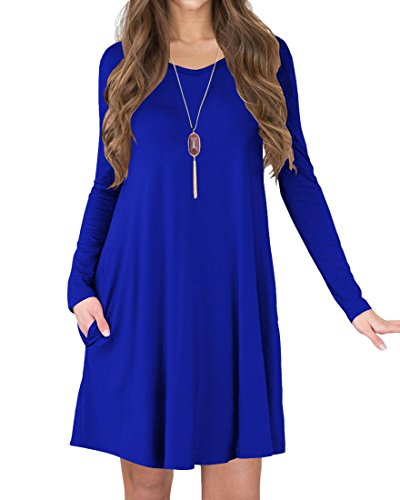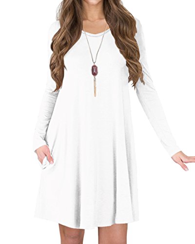 TINYHI Women's Casual Swing Flowy Plain Simple Cotton T-shirt Loose Dress