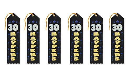 Beistle AR116 6-Pack 30 Happens Award Ribbon, 2 by 8-Inch