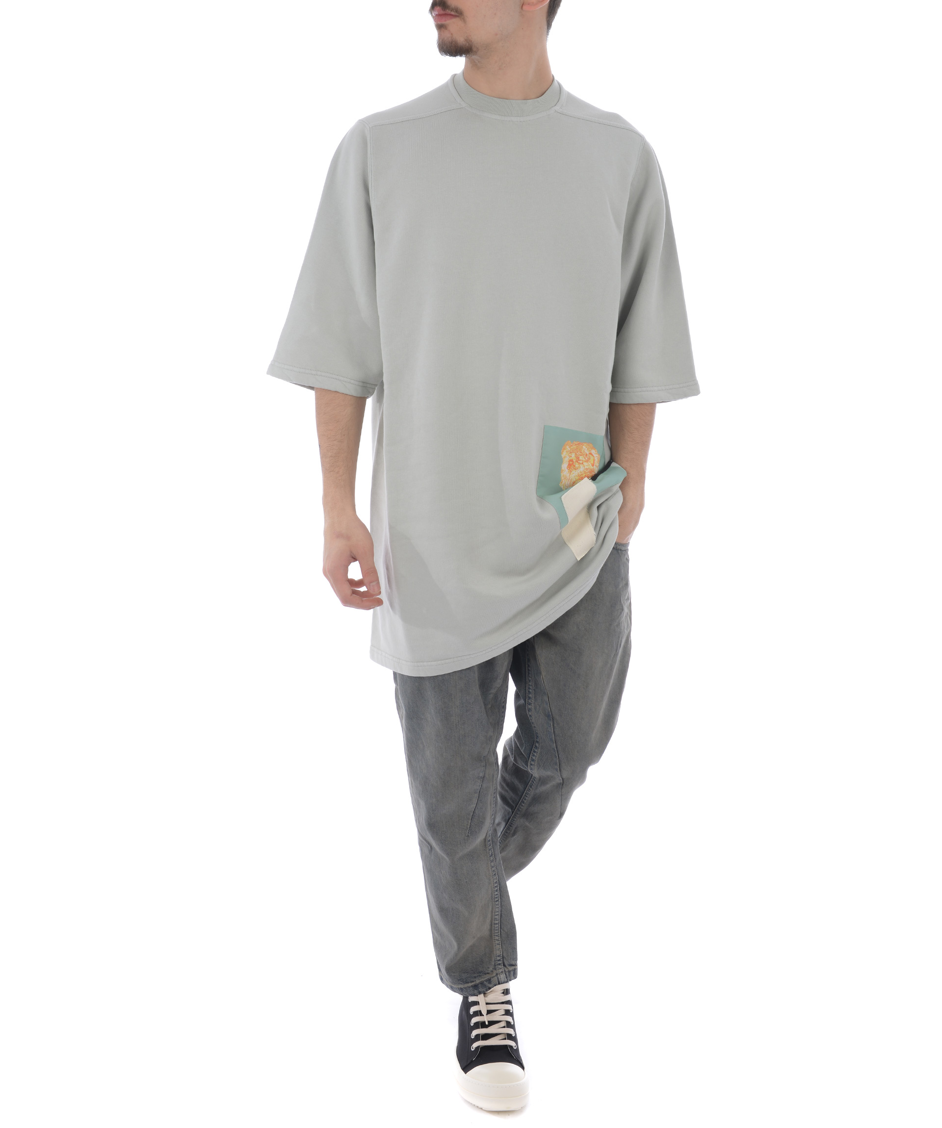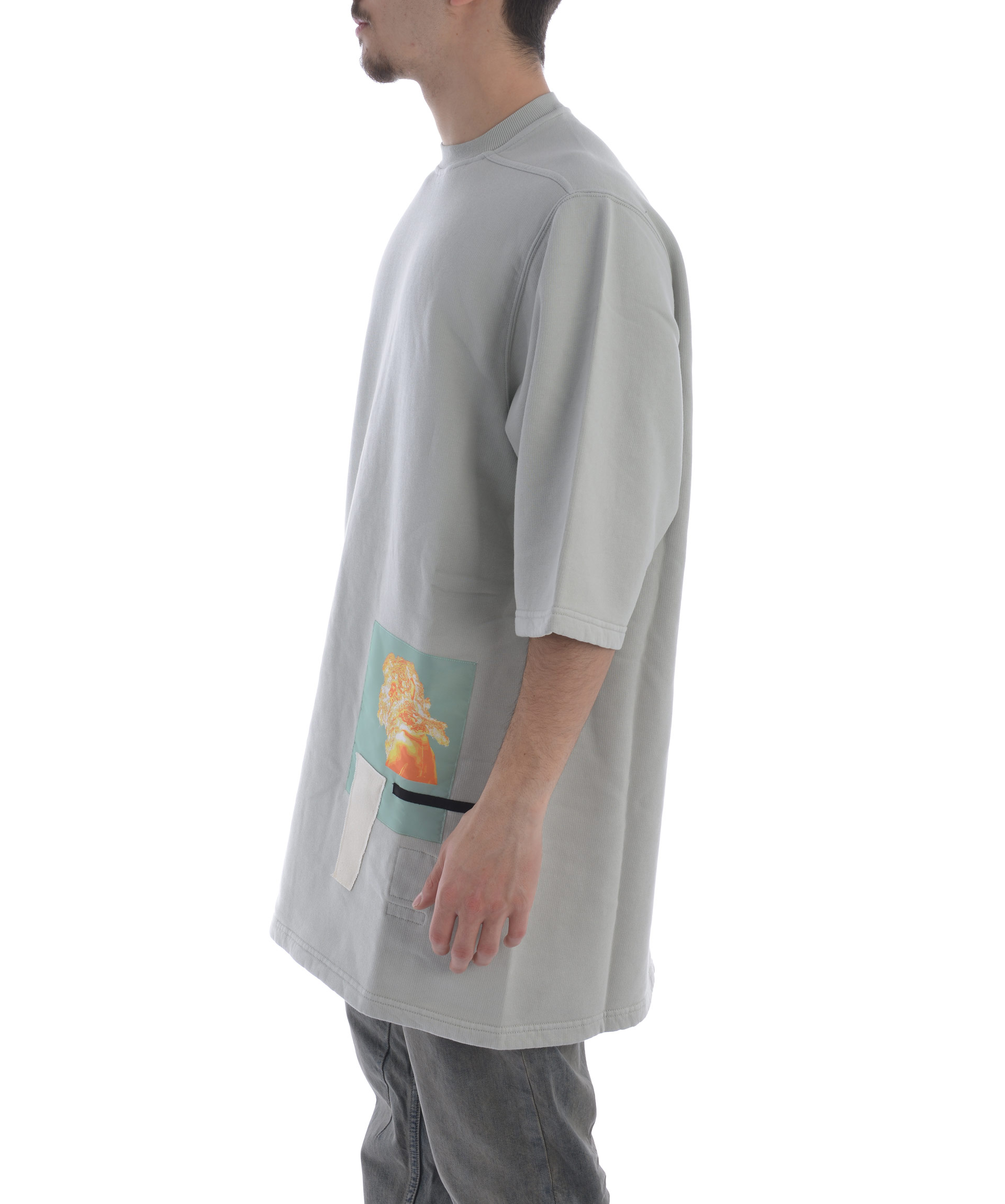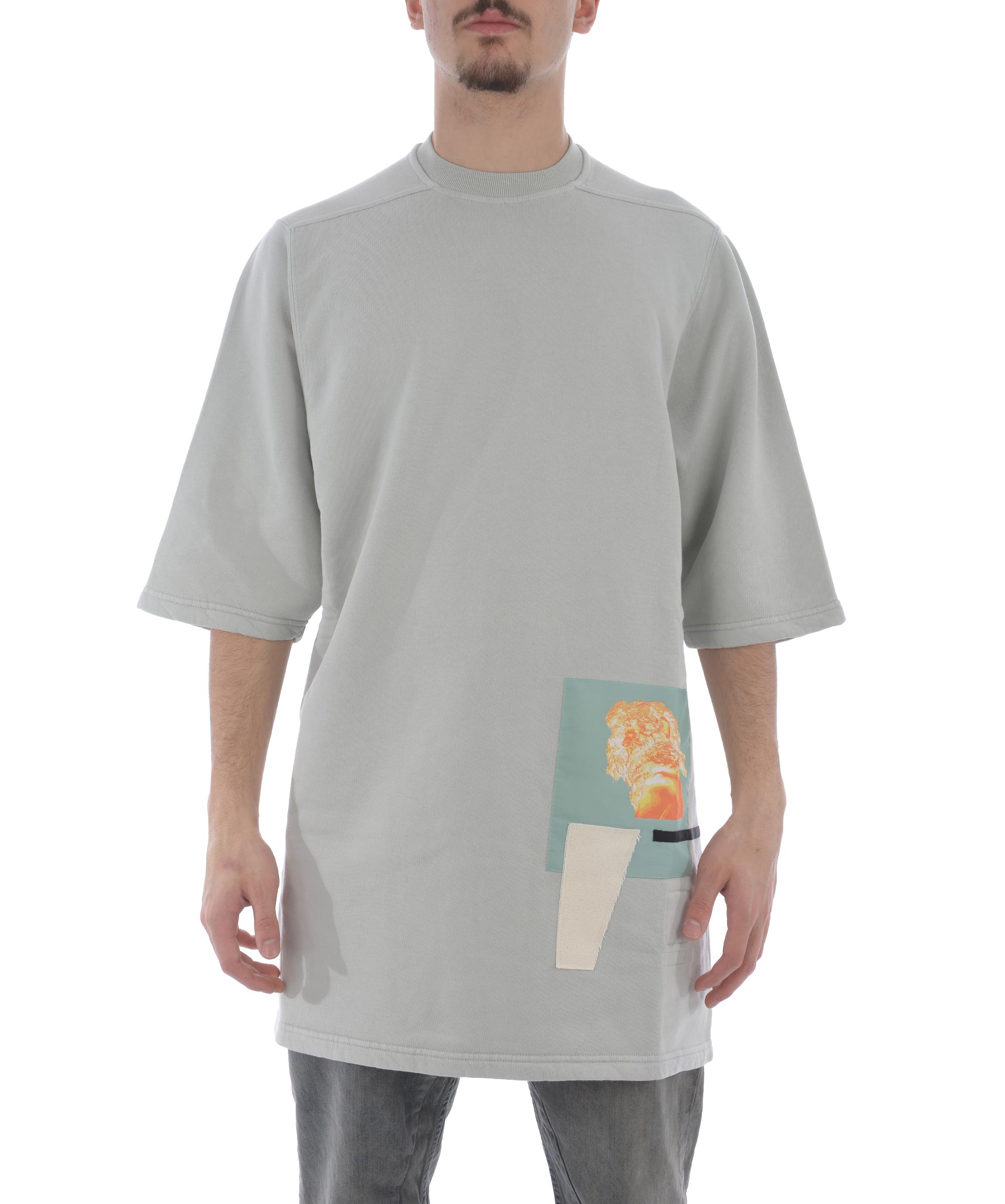Oversized T-shirt from DRKSHDW: Grey Oversized T-shirt with round neck, short sleeves, straight hem and printed design at front.