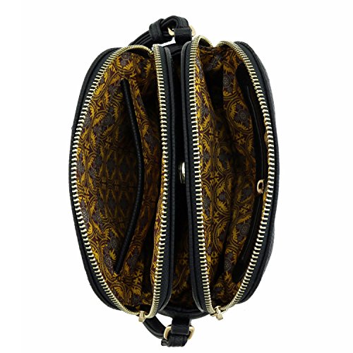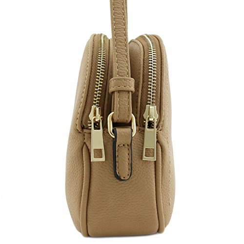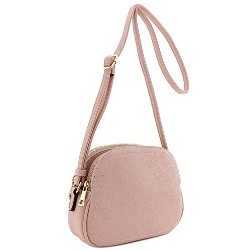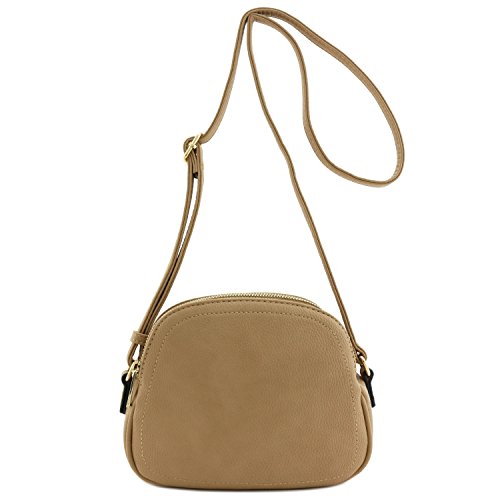This double zip half moon shaped small-medium size crossbody bag makes easy to organize your everyday items.
