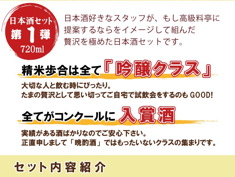 精米歩合は全て「吟醸クラス」になるので大切な人と飲む時にぴったり。