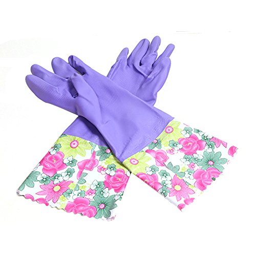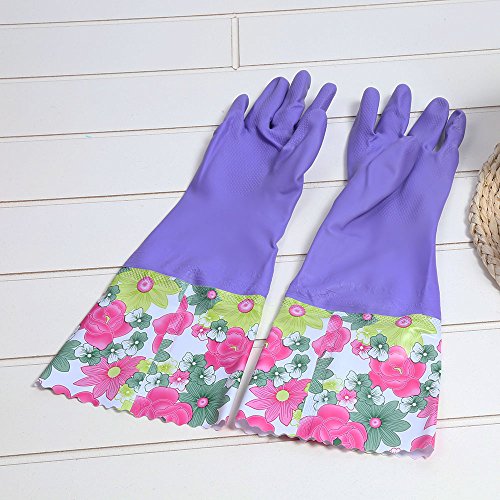 FireBee Rubber Cleaning Gloves Thicken Waterproof Kitchen Dishwashing Gloves with Lining Household Latex Gloves (1 Pair,Purple)