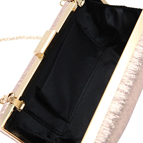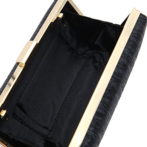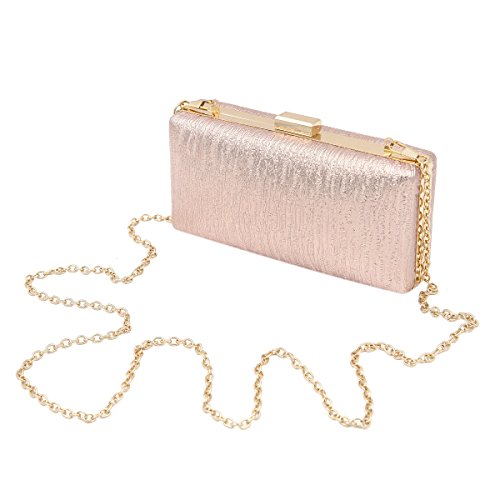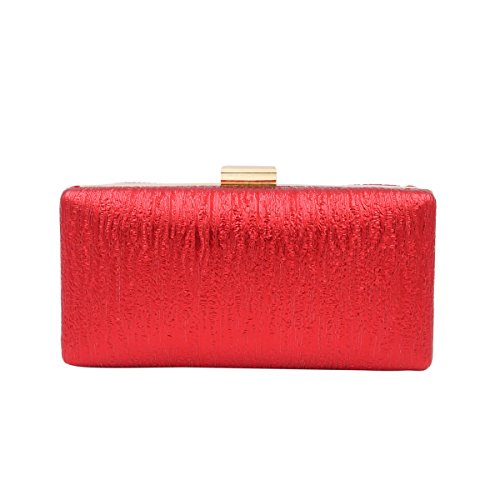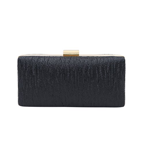 Product Description This premium quality evening clutch is both elegant and stylish. Durable PU leather outer and sturdy frame with clasp top closure. Detailed fully lined hard clutch with inner wall pocket to keep your belongings safe and secure. Removable hideaway chain strap with 23" drop. Stunning, functional and versatile. The size is 6.5" (L) x 3.5" (H) x 2.25" (W). Elegant design and rich leather feel with luxurious sheen. A must have accessory for the perfect night out. 0