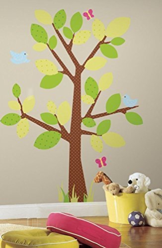 -. Feature : Transform your room with this set of dotted tree wall stickers / These are high quality genuine licensed vinyl wall stickers that are made in the usa, the ultimate trendy deco for any nursery or kids room, like our dotted tree this design features stylish leaves birds and butterflies but packs a bigger punch with some extra patterned leaves and lighter colors, because roommates remove and reposition easily you can try many variations until you've grown the tree of your dreams / An easy way to give any room a sweet earthy touch, you will receive the 2 sheets pictured that measures 18" x 40" an 9" x 40" each, the assembled tree measures 36" x 50" / Note:For return policy in non problem,customer has to response for shipping fee and 15% restore fee,Please return within 14 days after receive.