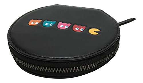 -. Title : Pac-Man Calf Leather Round Coin Case in Black, F54871