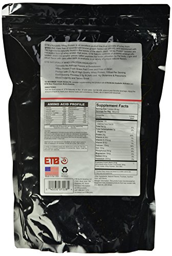 -. Binding : Health and Beauty -. Brand : ETB Eat The Bear -. Color : Vanilla -. EAN : 0637262797081 -. Feature : Only five (5) ingredients or less! Purest protein available. / All natural, non-GMO & RGBH free. / No artificial flavors or sweeteners. / Whey protein from grass-fed cows. / Contains no artificial flavors or sweeteners / Packed with 23.4 grams of high quality whey protein and 105 calories per serving / Provides 5.5 grams BCAA's and 4 grams glutamine and precursors / Mixes instantly and tastes great -. IsAdultProduct : 0 -. Label : ETB Eat The Bear -. LegalDisclaimer : Not recommended for individuals with allergies to dairy products and should not be used by pregnant or nursing mothers or children under the age 18 years of age without the advice of a physician. Excessive protein intake may result in impaired kidney function. -. Manufacturer : ETB Eat The Bear -. MPN : 637262797081 -. NumberOfItems : 1 -. PackageQuantity : 1 -. PartNumber : 637262797081 -. ProductGroup : Health and Beauty -. ProductTypeName : HEALTH_PERSONAL_CARE -. PublicationDate : 2014-08-23 -. Publisher : ETB Eat The Bear -. ReleaseDate : 2014-08-20 -. Size : 2 Pound -. Studio : ETB Eat The Bear -. Title : Eat The Bear Naturally Whey Protein Tub, Vanilla, 1.6 Pound -. UPC : 637262797081