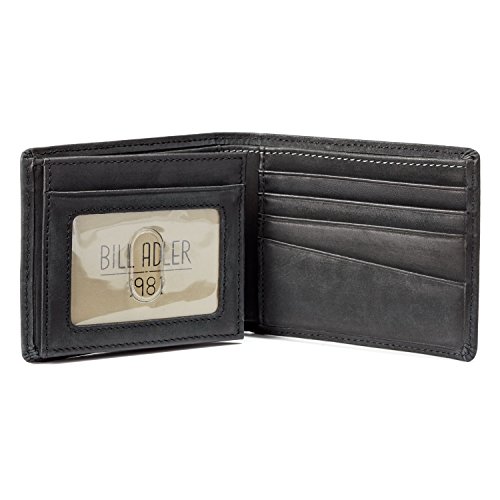 Will Leather Goods Bill Adler at Once Nubuck Black Leather Billfold wallet with Fold out ID Window