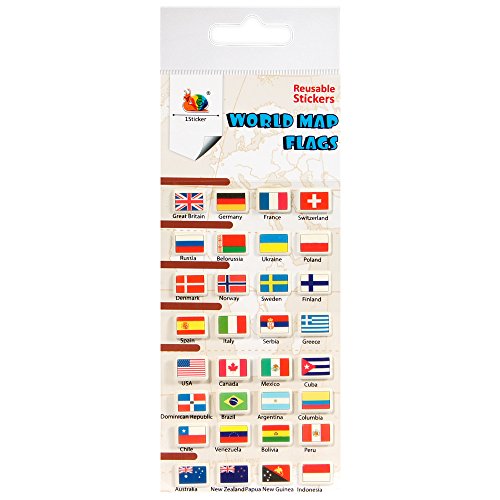 (1sticker)/Arts Crafts/Stamps Stickers/DIRECT FROM USA/World Map Flags Reusable Puffy Stickers