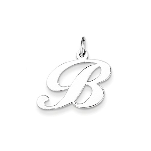 Indulge in a traditional initial charm that subtly enhances and personalizes your jewelry. Each fancy script letter is approximately 16mm (5/8 Inch) in length, fashioned from 14k white gold with a high polished finish and includes a standard jump ring. Made in the U.S.A. Chain not includedFeature