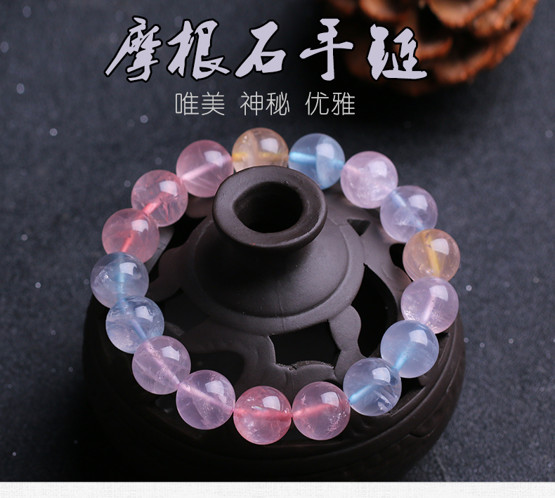 开光摩根石手链女绿柱石海蓝宝手串水晶饰品送闺蜜送女友