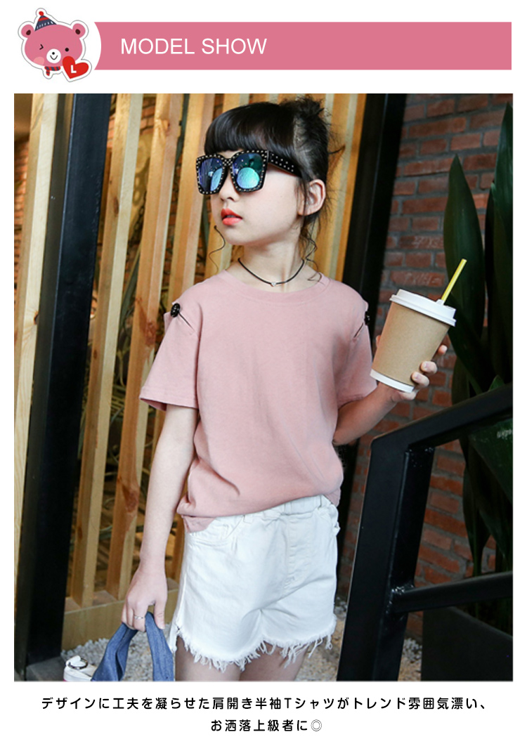 | 我が子はいつまでもお洒落に!デザインに工夫を凝らせた肩開き半袖Tシャツがトレンド雰囲気漂い、お洒落上級者に◎一見見ればシンプルだけど、バックスタイルは気品あり、周りと差をつけます。ちょっと緩めのシルエットがボディーラインを美しく隠せ、スタイリッシュアップ綿100%生地を採用し、コットンならではの肌触りが最高な着心地を与えてくれます。ショーツパンツやスキニーなどボトムスと合わせやすいから、着まわし力バツグン | |