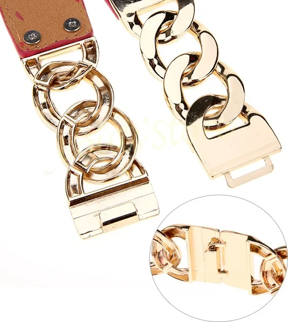 Free Shipping Women Waist Band Elastic Mirror Metal Waist Belt Leather Metallic Bling Gold Plate Wide Belt 31