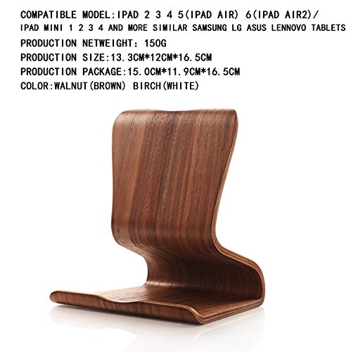 - Feature : Perfectly designed for iPad Air and iPad Air 2,and Compatible for iPad Mini Retina2/3 iPad Mini4 Tab 2/3/4/note 10.1, Google Nexus 7/9/10, E-readers and More / Can Adjust The Stand Holder In Different Angle Give You A Comfortable Operation Experiences / High Quality Handcrafted Wooden Stand, Lightweight And Minimalist, Durable Hard Body Ensures Reliability / Make of Nature Material Walnut Wood And Birch Wood Simple And Elegance Designed / Due to the natural materials and hand-made process, these specifications may slightly vary for each product. Wood grain might be different for each product and may contain some knots or natural smudges
