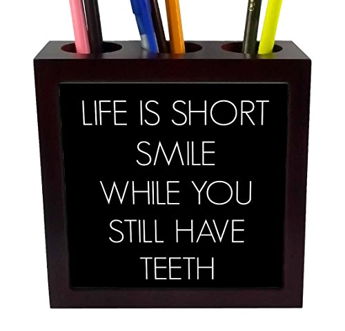 3dRose ph_220147_1 Life Is Short Smile While You Still Have Teeth Tile Pen Holder, 5"
